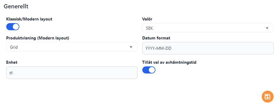 Dessa inställningar styr när er onlineorder butik är öppen och kan nås av era kunder.