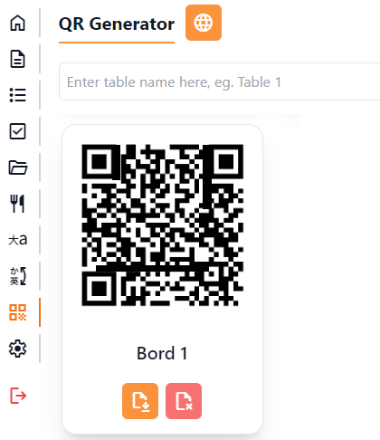 Nyttjas för att skapa upp QR koder för antingen bordsbeställning eller annan position i butiken där kunder kan skanna koden för att komma till onlineorder butiken.