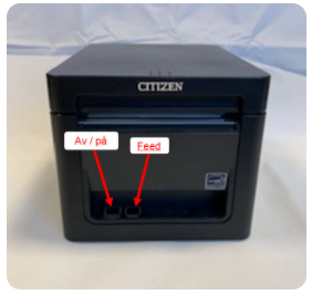 Tryck på knappen [Feed] och säkerställ att en bit kvitto matas ut.