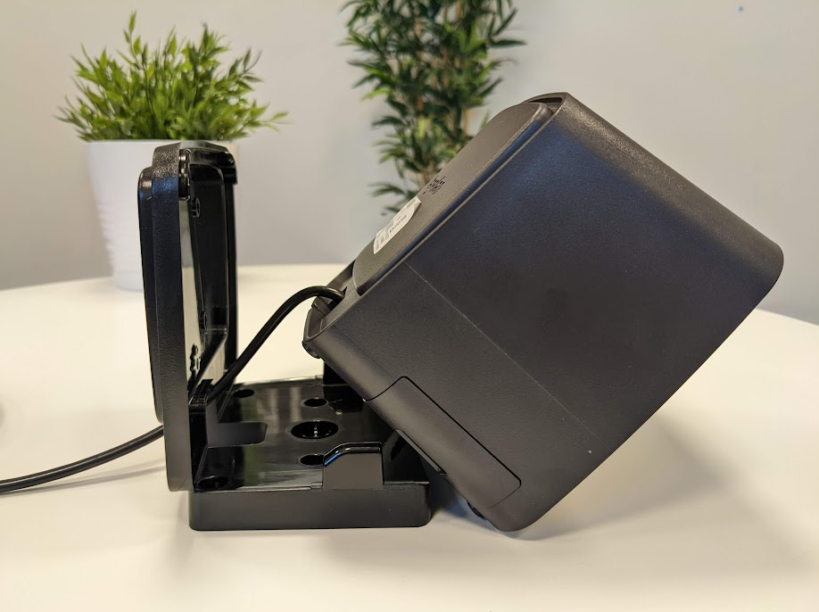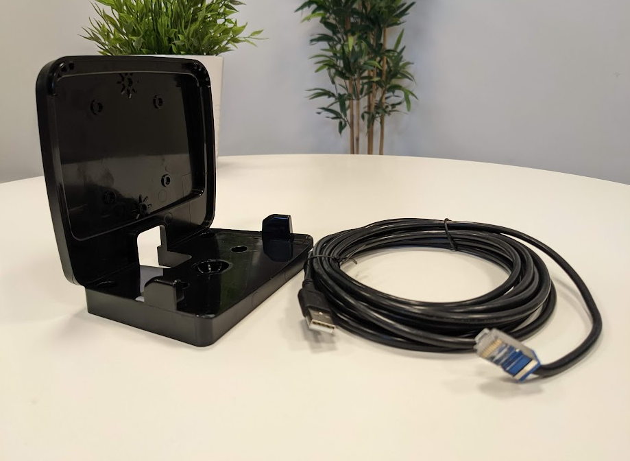 Enheten levereras med anslutningskabel samt monteringsfäste för kassadisken.