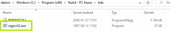 3. Registrera OPOPSCashChanger.OCX, genom att dra filen och släpp på regsvr32.exe (om inte regsvr32.exe finns under PC-Kassa-mappen, ligger den i BDE mappen, kopiera filen till PC-Kassa-mappen).