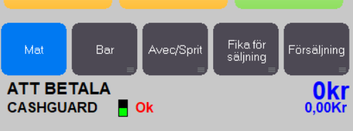 Starta PC Kassa, kontroller att PC Kassa fått kontakt med CashGuard och skapa därefter knappar för CashGuard-hanteringen enligt nedan