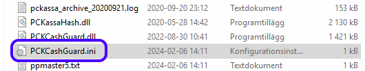 2. Packa upp filen PCKassaChasguard.ZIP och lägg alla filer direkt i PC-Kassa-sökvägen. Standard är sökvägen till PC Kassa: C:\Program Files (x86)\Nutid - PC Kassa\