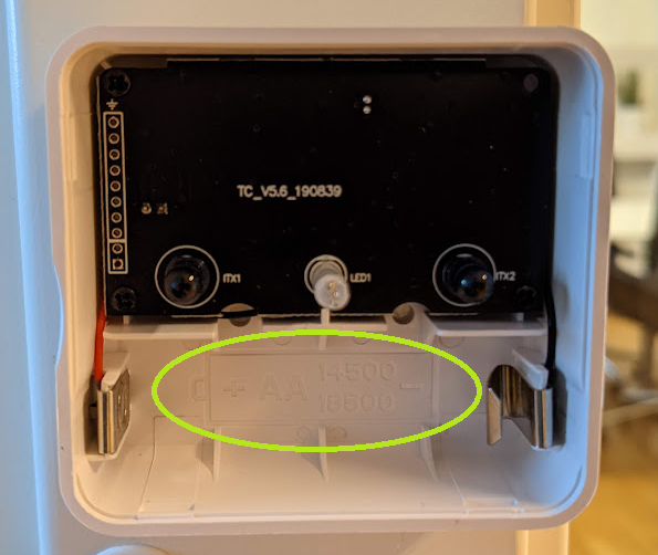 - Batterier av typen ER14505 / ER18505 (ca livslängd 1-1,5år), även kompatibel med standard AA 1,5V batterier (vilket dock har en kort livslängd och bara bör användas i undantagsfall).
