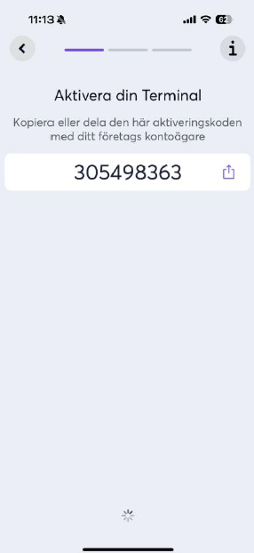 När inställningarna är gjorda, tryck på More längst ner till höger i appen. Bläddra ner och tryck på About. Ditt Terminal ID står vid Source Terminal ID. Terminal ID behövs för att supporten ska kunna aktivera terminalen för försäljning