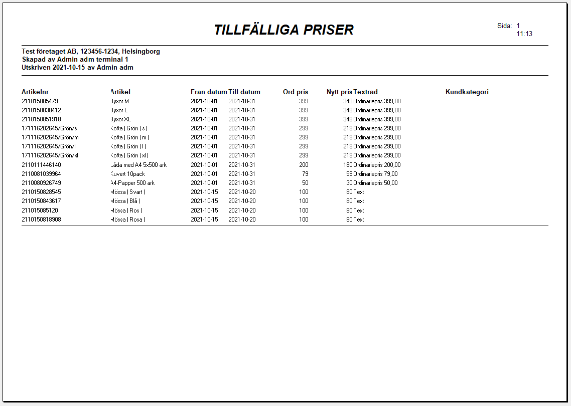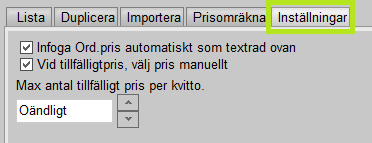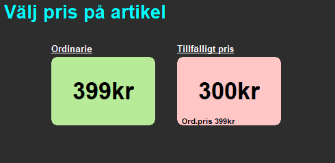 Tillfälliga priser kan upprättas genom att antingen lägga in berörda artiklar manuellt, importera från en fil, duplicera befintliga eller prisomräkna en hel varugrupp. Det går också bestämma hur många tillfälliga priser varje kvitto ska godkänna, till exempel ifall det maximalt ska tillåtas ett visst antal tillfälliga priser per kvitto.