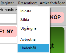 För att sälja presentkort (papper, magnetkort), klicka på knappen [Presentkort] nere till vänster på skärmen.