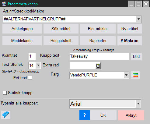 Ge knappen ett beskrivande namn. Här: Takeaway
