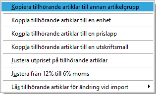 Det blir nya momsregler för takaway den 1 april 2026. Då alternativa artikelgrupper inte går att använda i Start får man i stället kopiera befintliga artiklar till en ny artikelgrupp med 6% moms vilket kommer visas i artikeln.