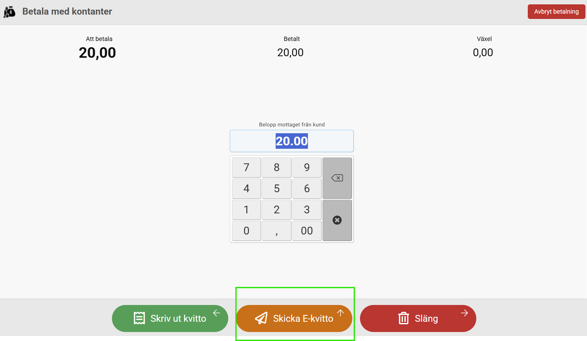 Så här ser knappen ut i kassan: